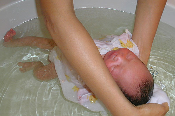 出張にて、赤ちゃんをお風呂に入れます。